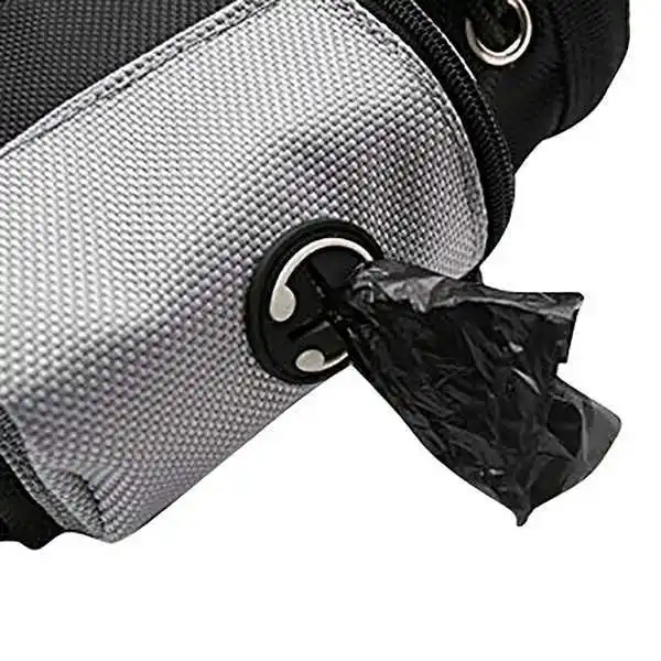 ✅ Built-in Waste Bag Holder – A dedicated side pocket securely holds plastic poop bags. Includes a convenient pull-out tab for easy dispensing — clean up after your dog without missing a beat.