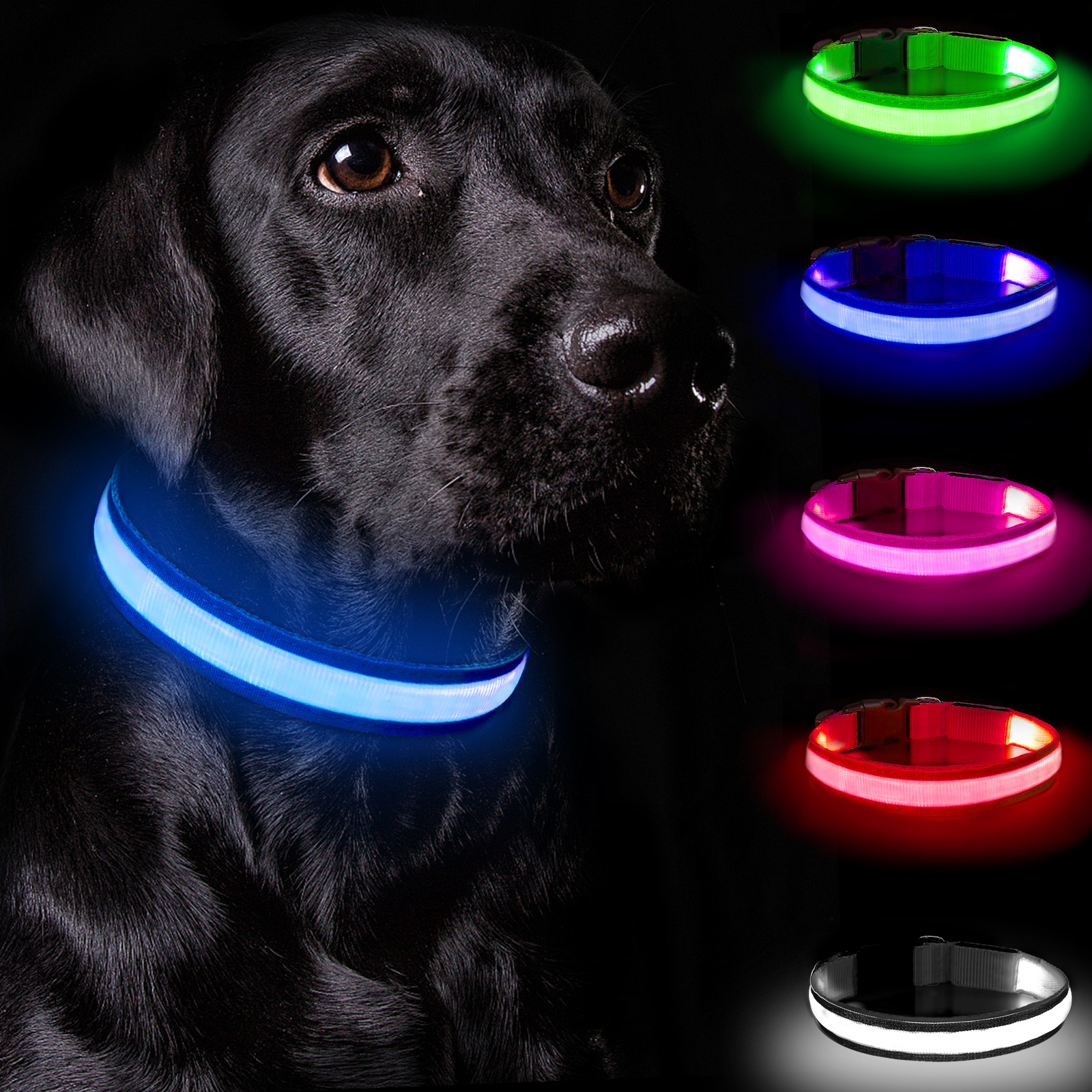 - LIGHT UP DOG COLLAR WITH HIGH VISIBILITY : Our flashing dog collars come with a wide, bright light ring, so you can instantly track the exact location of your four-legged friend in any bush or grassy area. Especially during the ‘dark season’, the light-up collar ensures that you, vehicles and pedestrians will see your dog well in advance, thus avoiding accidents and disappearances. The light up collar is a necessity for night walks.